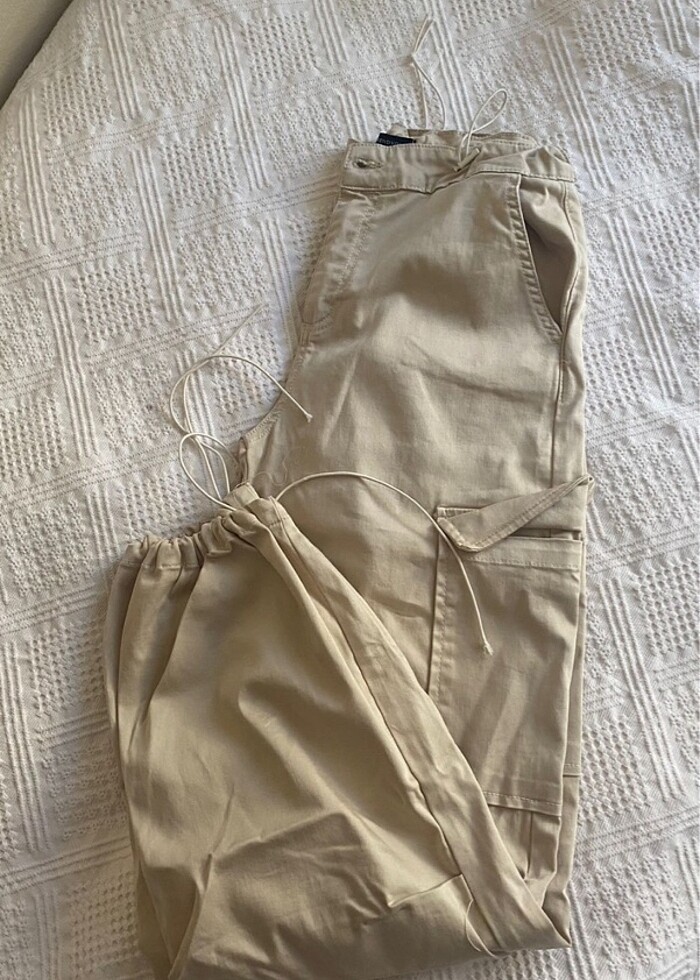 Ekru Kargo Cepli Paraşüt Pantolon