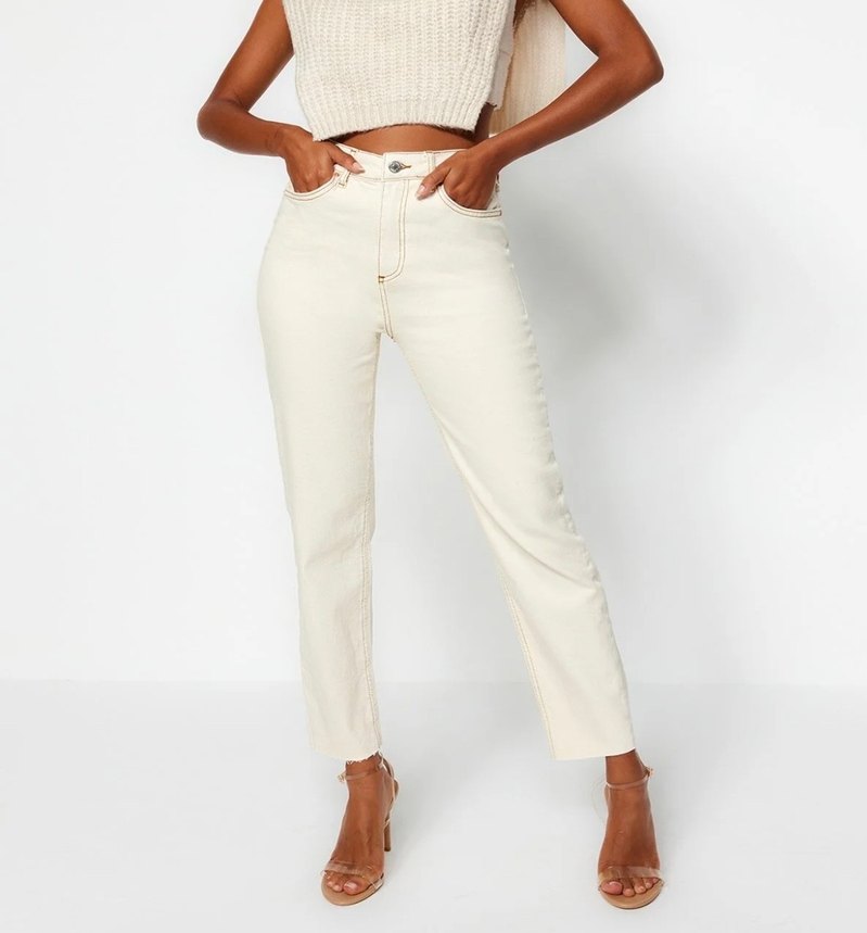 Ekru Regular Fit Midi Kadın Kot Pantolon