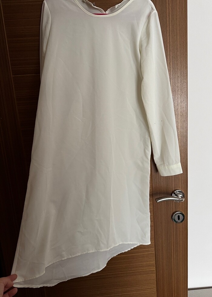 Ekru beyaz renk uzun kol önü kısa arkası uzun tunik