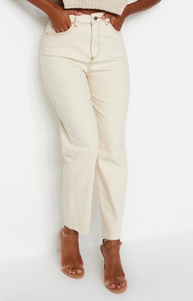 Yüksek bel, ekru boru paça jean. Günlük ortamda kullanıma uygundur. Ürün sadece 1 kez giyildi.