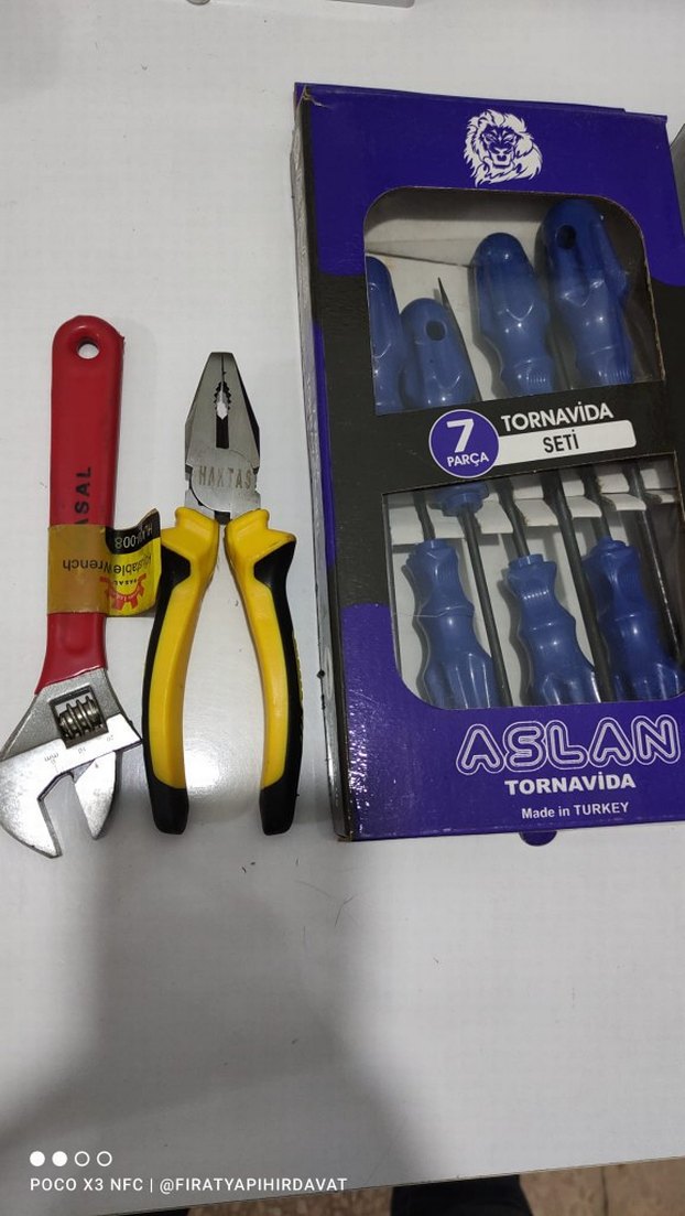 7 Li Tornavida takımı + Pense + 8 no Kurbacık 20 cm uzunluğunda sıfır ürünlerdir