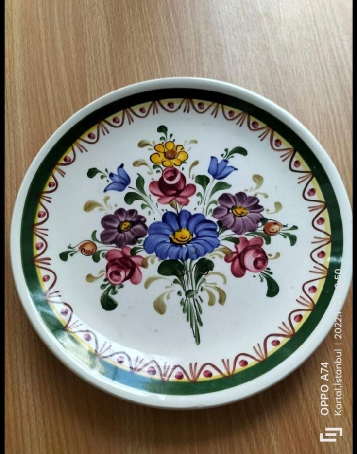 El Boyama Çiçek Desenli Çok Renkli Tabak Avusturya Malı