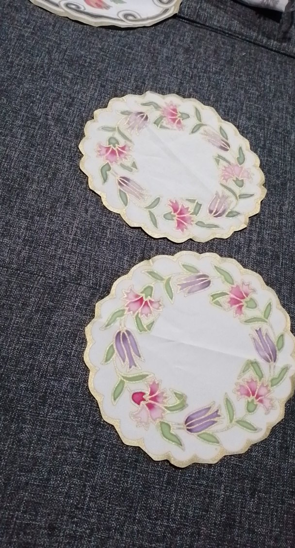 el boyaması iki adet sehpa örtüsü