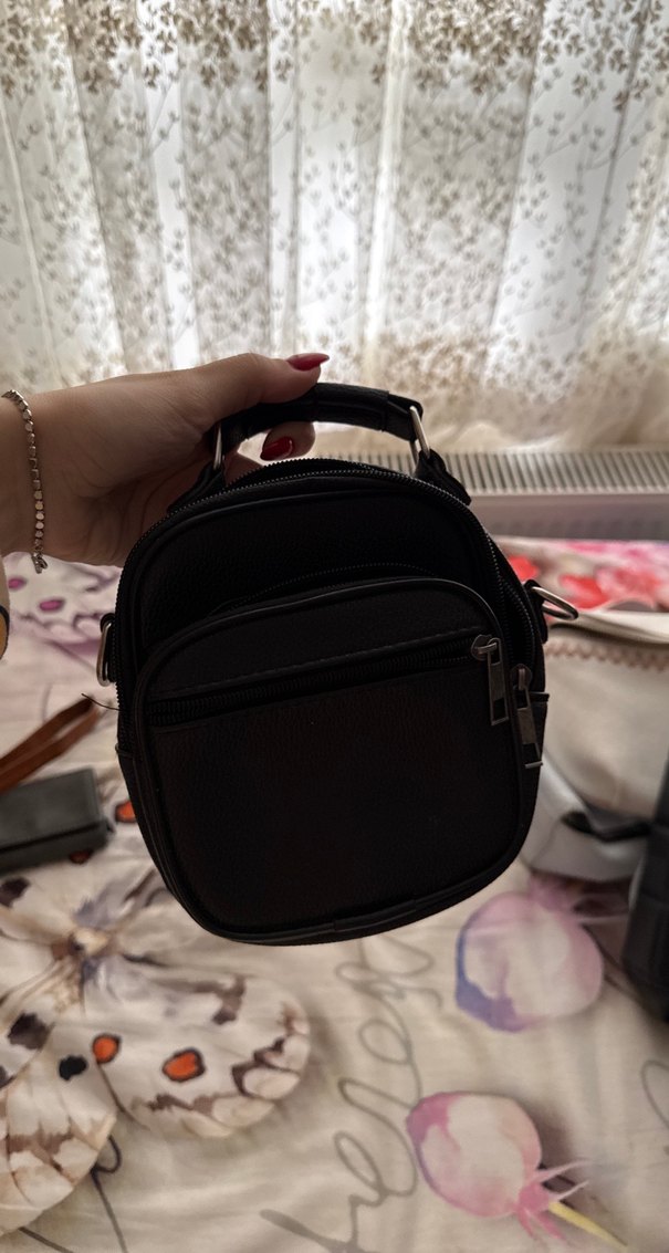 Siyah deri, tokalı ve çok bölmeli erkek el çantası, trend sokak tarzına uygun.