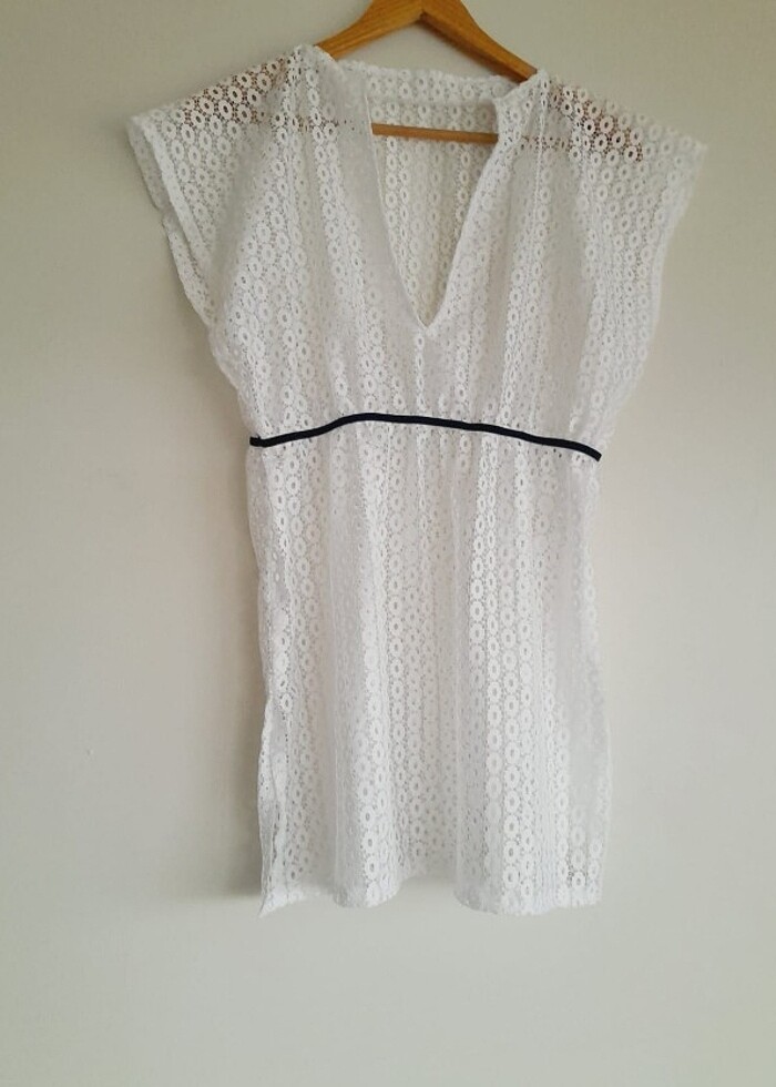 Ürün el dikimi ve sıfır üründür. Beyaz ,çiçekli ,tül kumaştan dikilmiş olup bel kısmına siyah kadife lastik dikilmiştir. Sahilde, yazlıkta, plajda, deniz kenarında giyebileceğiniz çok rahat, kullanışlı bir plaj elbisesidir. S-M bedendir. #plajelbisesi #plaj #elbise #kadıngiyim #kadınkıyafeti #kadınelbisesi #yaz #yazlık #hediye #hediyelik #sahil #deniz