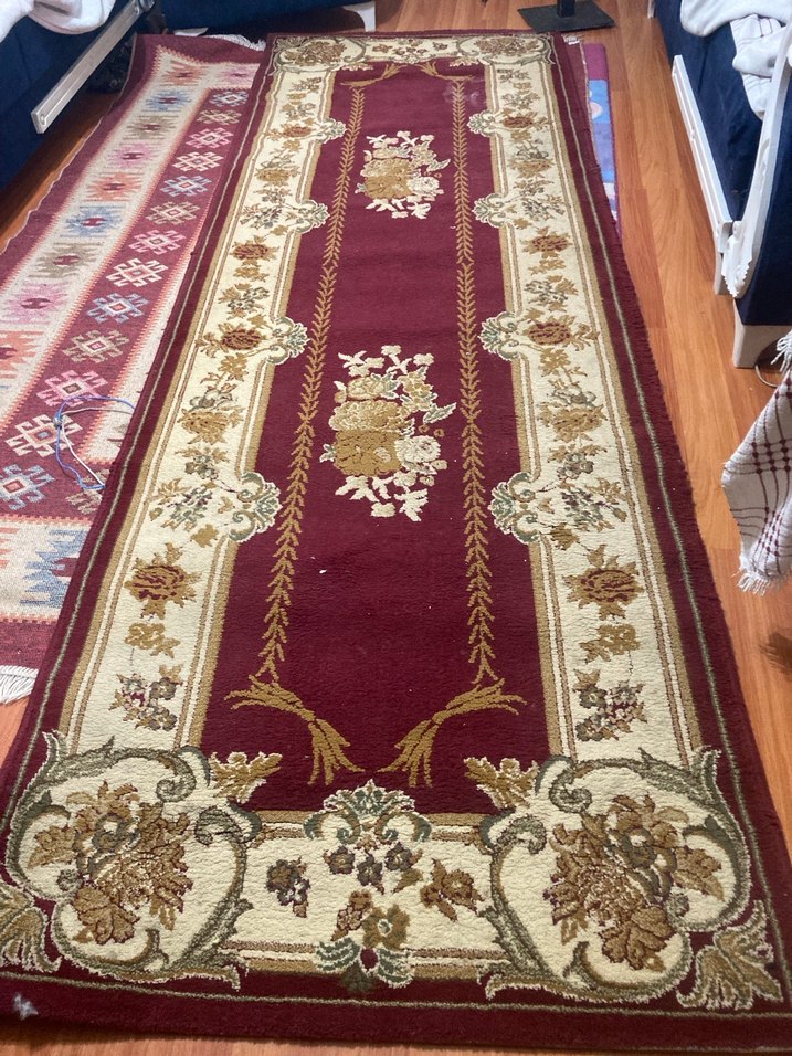 • Menşei: Türkiye – Isparta • Tür: El dokuma Isparta halısı (klasik floral / bordürlü desen) • Yaklaşık Ölçü: 86 × 290 cm (yolluk formu) • Dokuma: Yün hav – pamuk çözgü • Düğüm: Türk (Gördes) düğümü • Desen: Klasik Isparta tarzı, simetrik floral motifler • Renkler: Bordo zemin, krem bordür, bej–yeşil–altın tonları • Dönem: Tahmini 1980–1995 • Durum: Kullanılmış, genel durumu iyi. Yer yer doğal hav düşmesi mevcut Bu halı, seri üretim makine halısı değil; el dokuma Isparta grubuna aittir. Motif yerleşimi, renk geçişleri ve arka dokuma yapısı bunu desteklemektedir. Antika sınıfında değildir ancak klasik el dokuma koleksiyonluk kategorisindedir El Dokuma Isparta Yolluk – 86×290 cm – Klasik Desen Türkiye menşeli, el dokuma Isparta halısıdır. Klasik floral desenli, bordo zeminli ve zarif bordür yapısına sahiptir. Yün havlı olup el emeğiyle dokunmuştur. • Ölçü: 86 × 290 cm • El dokuma – Isparta menşei • Klasik & zamansız tasarım • Salon, antre ve koridor için ideal • Temiz