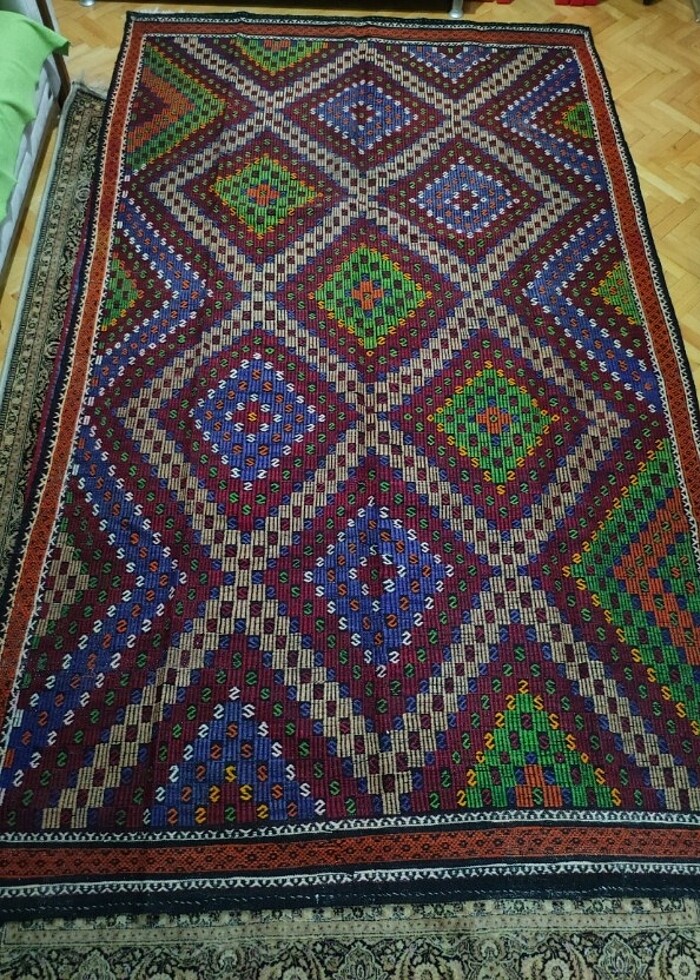 190x320 boyutlarındadır. Kök boyalı, el dokumalı zili kilimdir. Deformesi bulunmamaktadır.