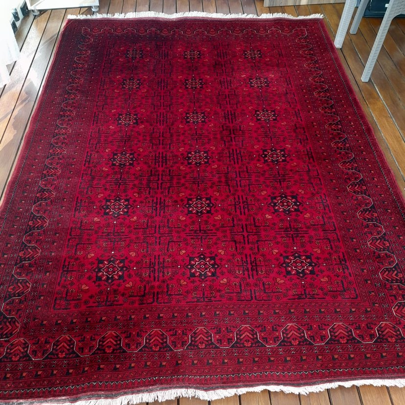 El dokuması, saf yün, bordo Afgan halısı