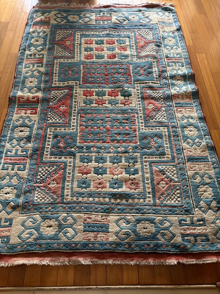 Geometrik desenli mavi renk hakim 220/135 cm yun hali