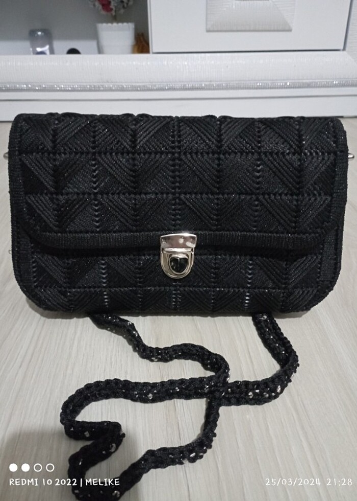 El emeği siyah simli abiye çanta demir askılı sıfırdır. Tek gözlüdür içinde ufak 2 bölme vardır zincir askılıdır