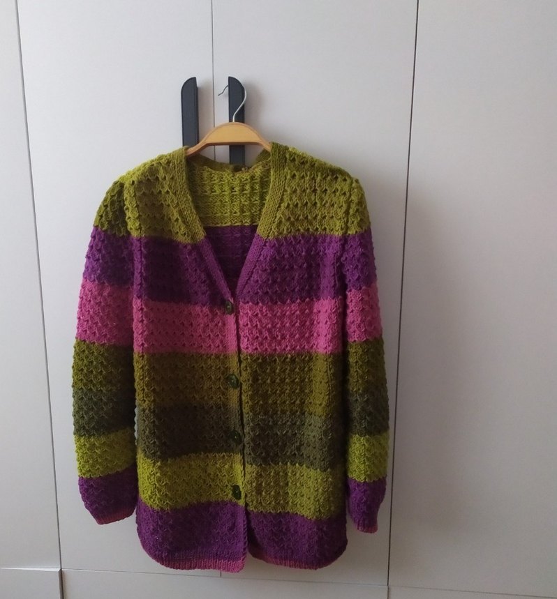 Uzun kollu, Renkli diz üstü el örgüsü sıfır ürün. X L .