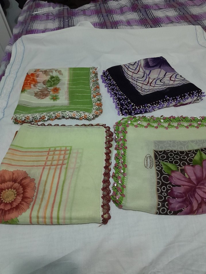 Renkli tekstil kumaştan, dantel kenarlı kadın fularlarıdır. Vintage ve bohem tarzları yansıtarak retro bir hava katar.