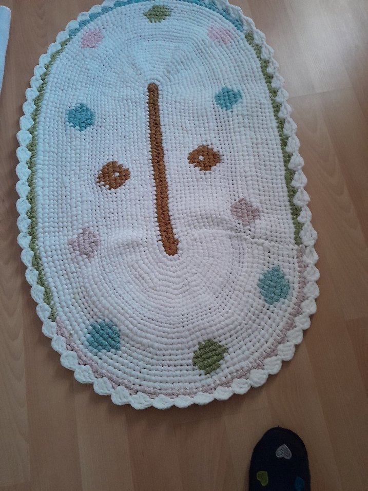 Oval şekilli çocuk halısı, yumuşak dokusu, pastel çok renkli noktalar ve dalgalı kenarı ile rahat bir ortam sağlar.
