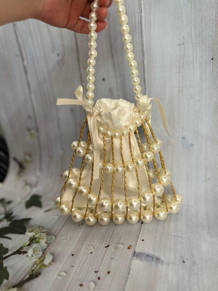 el emeği incili çantam iri boncukla yapılmış