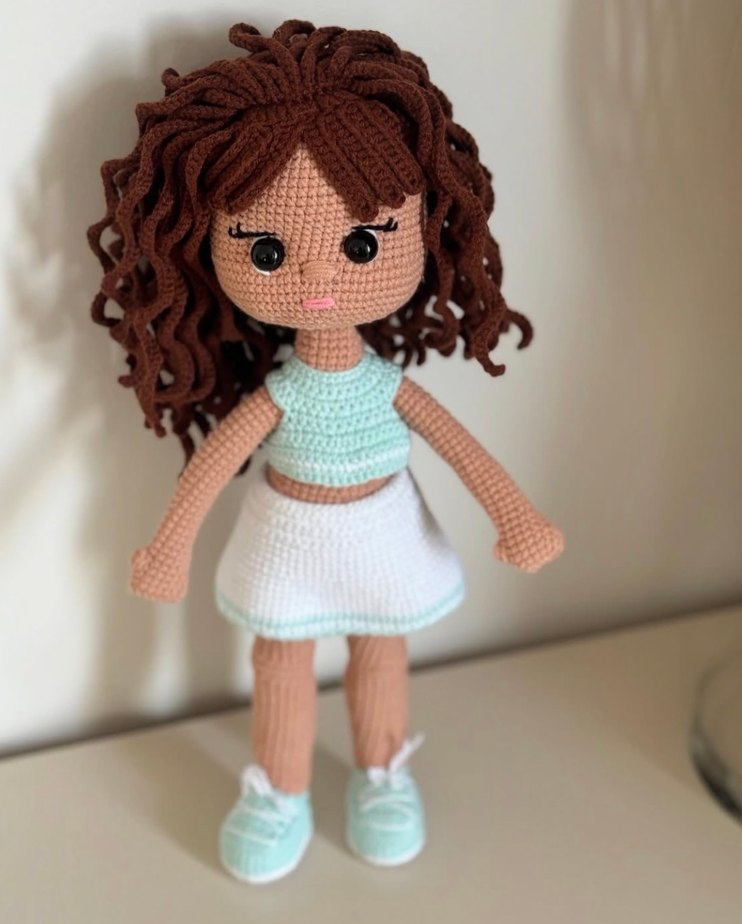 Fiyat bilgisi yazdığınız zaman istediğiniz modele göre verilir ilandaki fiyat gerçek değildir İstenilen siparişi alıyoruz toka,çanta,yelek,ev babeti anahtarlık El yapımı örgü bebek, kahverengi kıvırcık saçlıdır ve pastel mavi üst ile beyaz etek ve uyumlu ayakkabılar giymektedir.