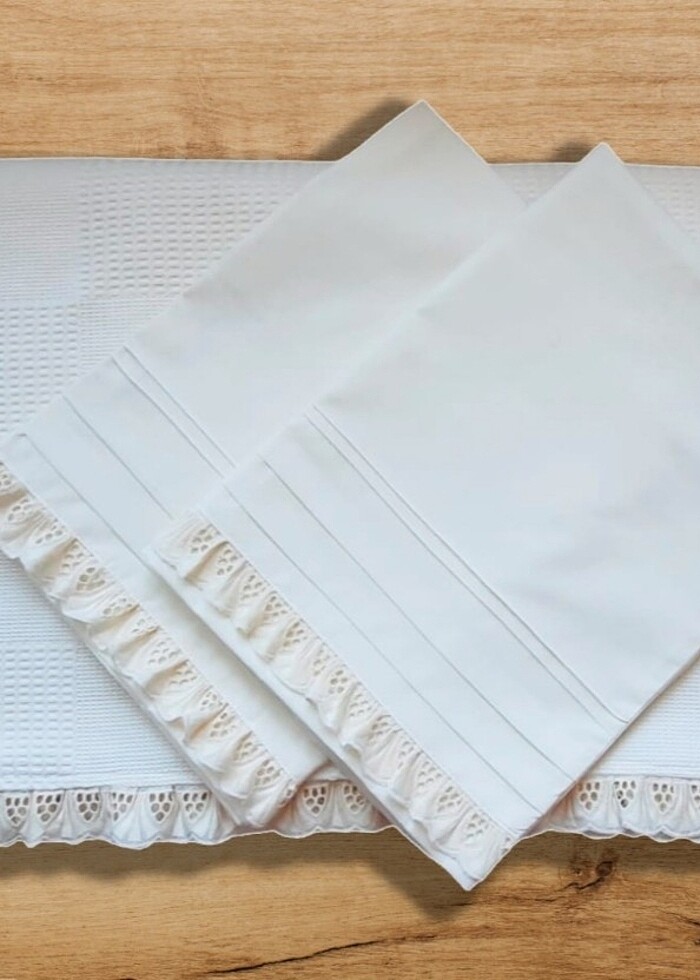 Set olarak pike takımımızın içeriği -Krem pike -Krem poplin çarşaf -Krem yastık kılıfları'ndan oluşmaktadır.