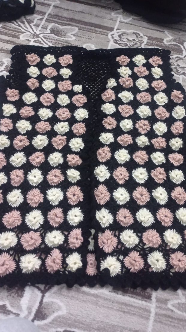 V yaka, kolsuz ve kısa kesim, nakışlı çiçek desenli örme kadın yeleği. Bol kesim ve koyu çok renkli, rahat bohem tarzı. Adet fiyatıdır. 3 renk mevcuttur. hiç kullanılmamıştır yenidir.