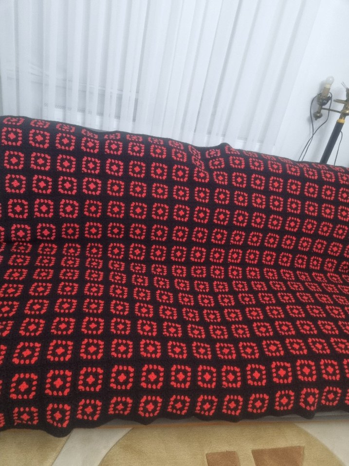 Koyu kırmızı ve siyah kare desenli bu battaniye, her odaya sıcaklık ve şıklık katar. ️El emeği göz nurudur Ölçüler fotoğraflarda gösterilmiştir