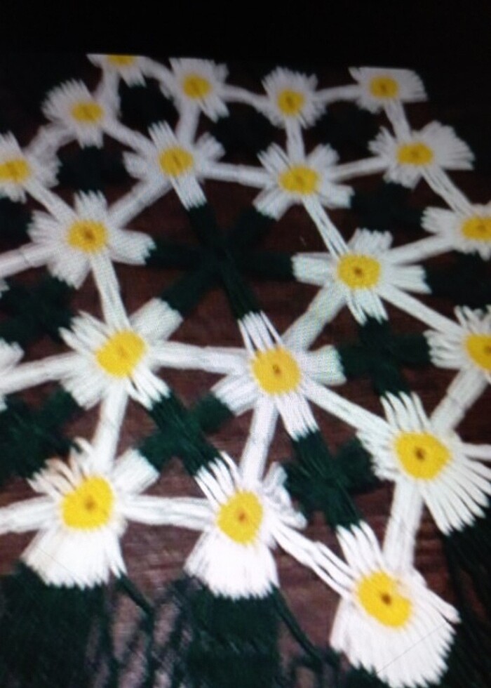 Özene bezene papatya motiflerle örülmüş hiç kullanılmadı kusursuz ceyizlik.capı 155 cm.büyük boy