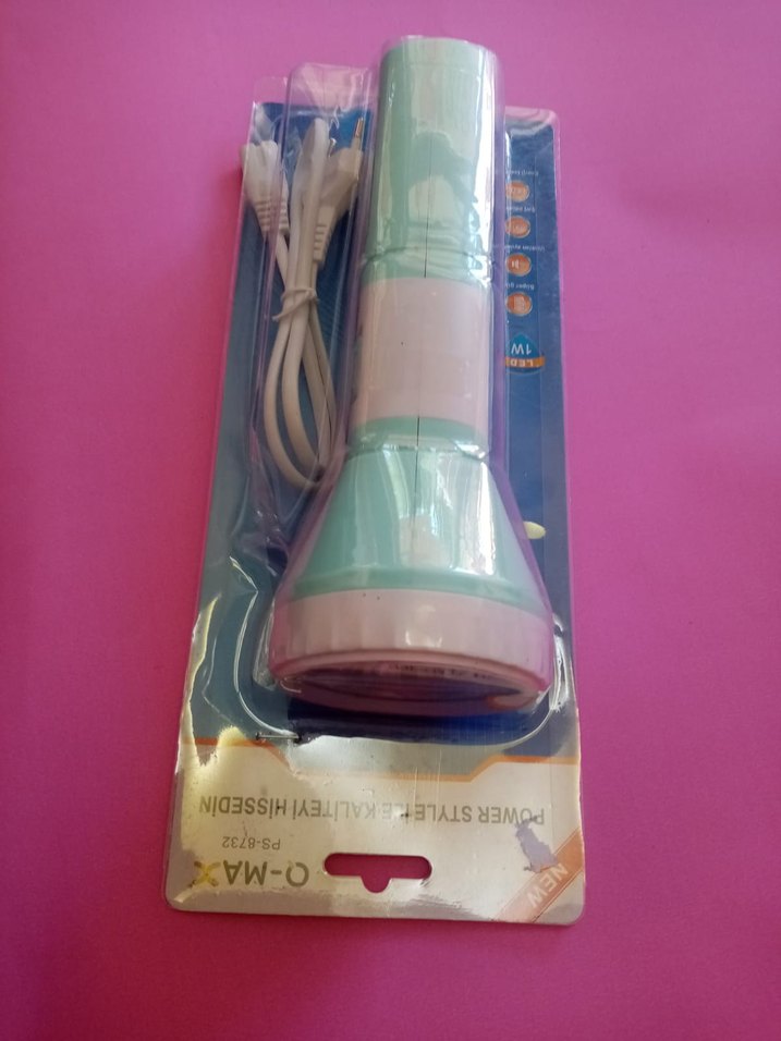 Diger markalı, çok renkli ve açık tonlarda el feneri. Şarj kablosu ile birlikte gelir. Taşınabilir ve kompakt yapıda.