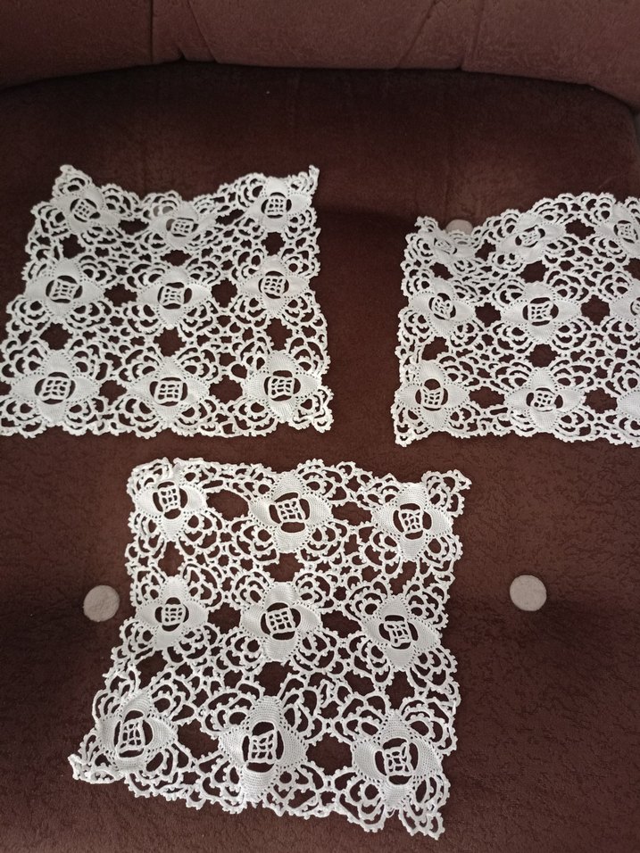 Çiçek desenli beyaz dantel motiflerden oluşan el işi seti, dekorasyon ve el sanatları için uygundur.