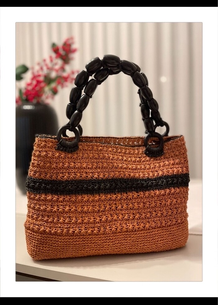 Tamamen el işçiliği sıfır , tarçın rengi bambu sap çanta