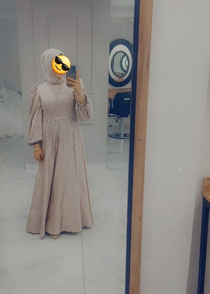 Nişanımda 3 saatlik giydim tertemiz hiç bir sorun yok renk bej beden 44 beden çok güzel bi elbsise 38 bedenden itibaren giyebilir