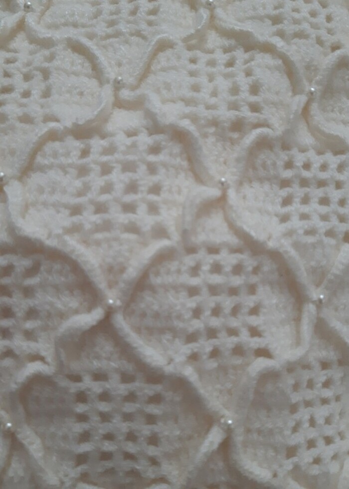 Annemin kendi yaptığı üründür. Battaniyenin iç kısmında pamuklu kumaştan astarı mevcut. Yastık kılıfının ölçüsü 33x33 cm. Battaniye de sanırım 90x90 cm olabilir ya da buna yaklaşık standart bebek battaniyesi boyutlarında net sayı hatırlamıyorum. Görsellerde görüldüğü gibi büyük el emeği ve dikkatle hazırlanmış. Boncukları bile sapasağlam soyulma vs. Yok ve hepsi yerli yerinde eksiksiz duruyor. Hiç kullanılmamış sıfır tertemiz üründür.