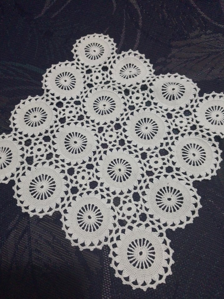 El işi beyaz örgü dantel, dairesel desenlerle geleneksel detaylara sahip.hiç kullanılmadı 8 parçadan oluşmaktadır