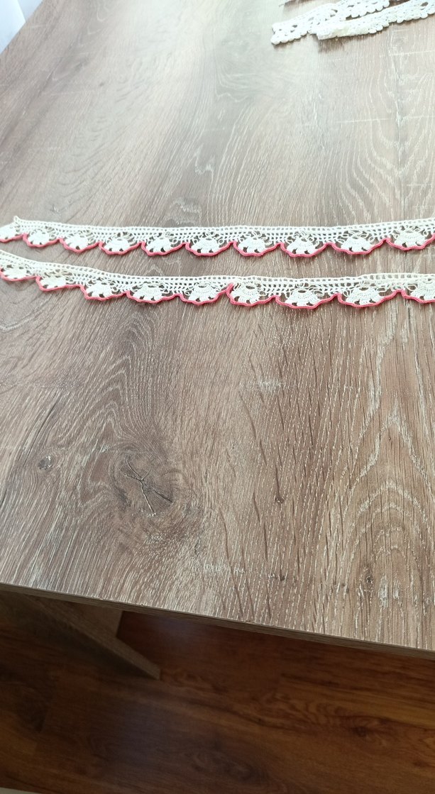 Beyaz ve pembe kenarlı, el işi bohem dantel şeritler, dekoratif el işleri için uygundur.