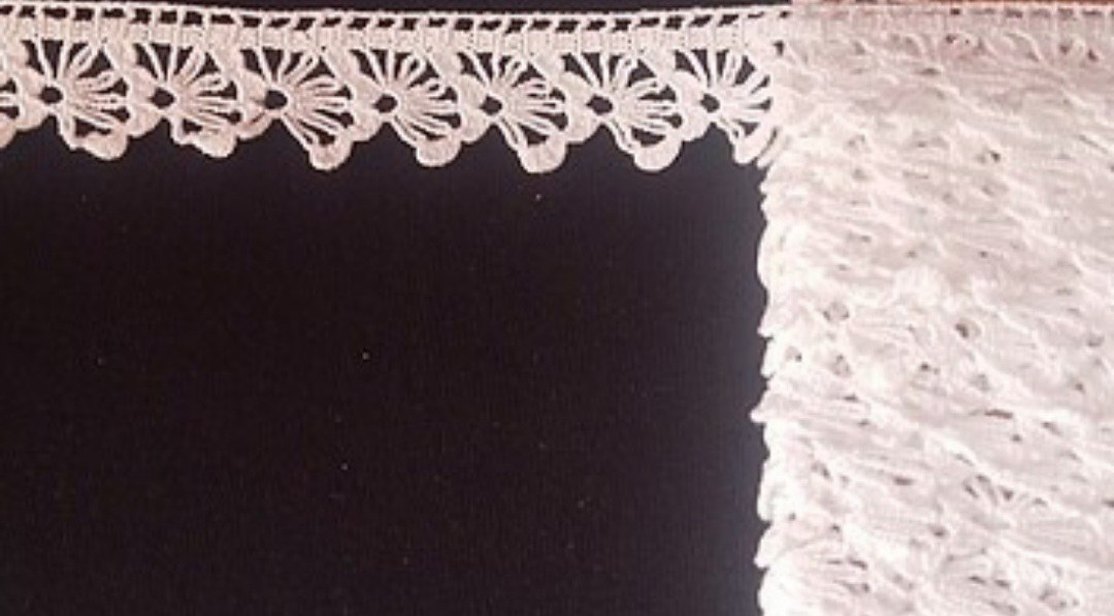 Çiçek desenli, geleneksel ve ince işçilikle yapılmış el işi dantel kenarlık. Kumaşlara klasik bir dokunuş katar.