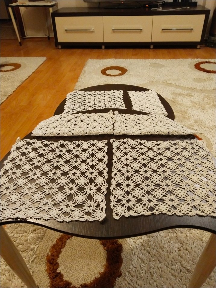 Klasik tarzda el işi beyaz dantel seti, zarif ve dekoratif desenlerle hazırlanmıştır. Ev dekorasyonunu tamamlamak için uygundur. kullanımılmadı