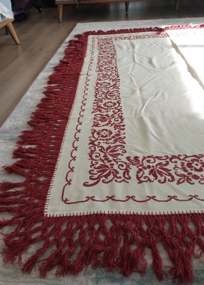 Harika el işçiliği olan masaya da yatak örtüsü olarak kullanılabilen 15 yaşındayken annemin işlediği tam bir antika o kullanmaya kıyamamış ben de kullanmaya kıyamadım bundan sonra da kullanamam yaşım 70'i geçiyor tam bir antika ürün 76 yıllık tam bir ANTİKA