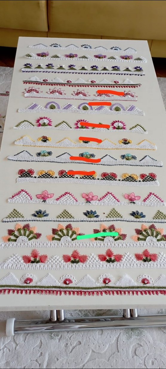 elimde hazır vardir.hemen kargolanir.Çeşitli renklerde çiçek ve geometrik nakış desenlerine sahip el işi dantel şeritler. Geleneksel ve ince işçilikle hazırlanmıştır.