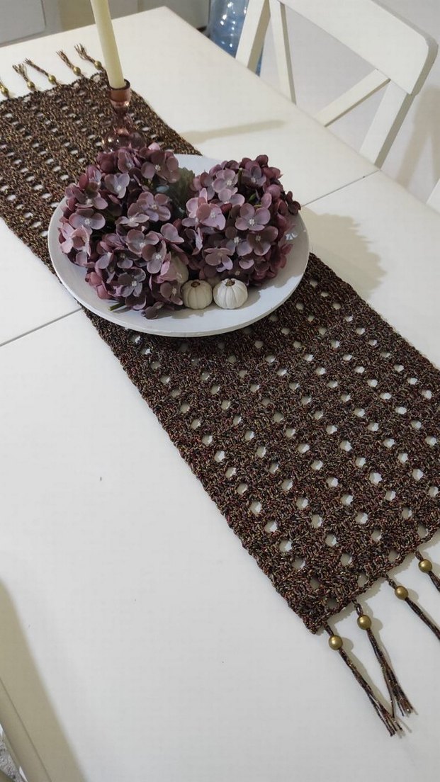 boncuklu püskülleri olan zarif desenli el örgüsü