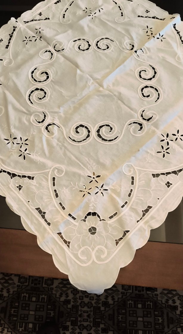 el İşlemeli Beyaz Masa Örtüsü Avrupa'dan aldım