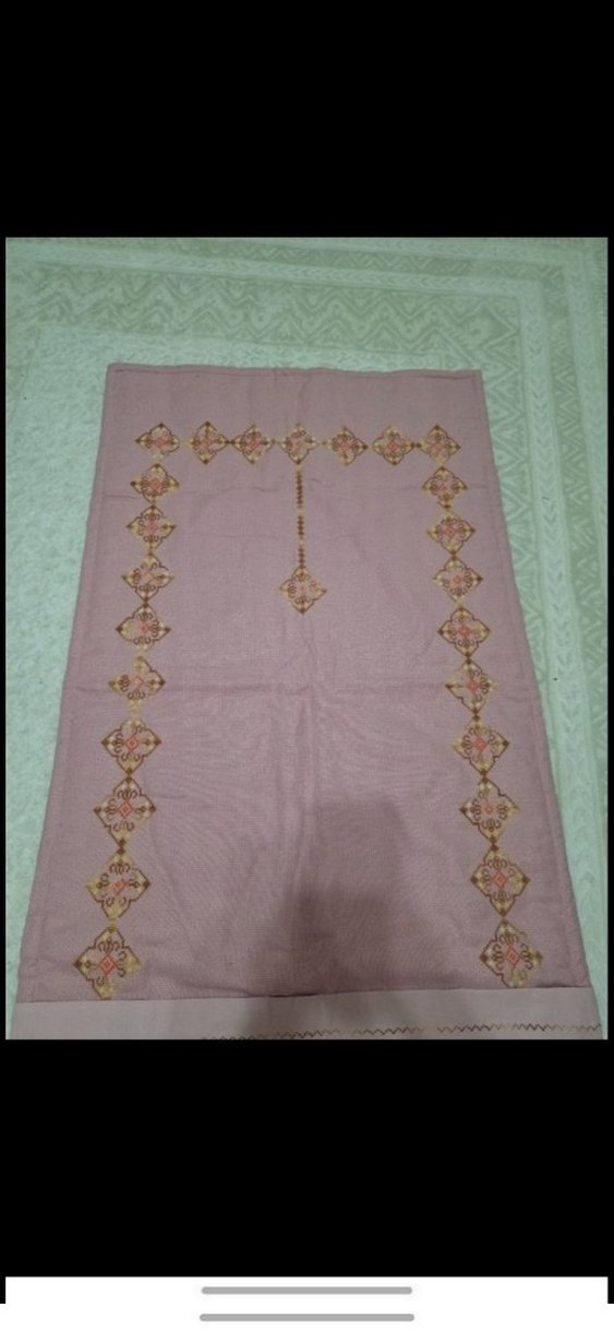 Yumuşak pembe zemin üzerine el işçiliğiyle kenar ve ortada elmas desenli geleneksel işlemeli kumaş.