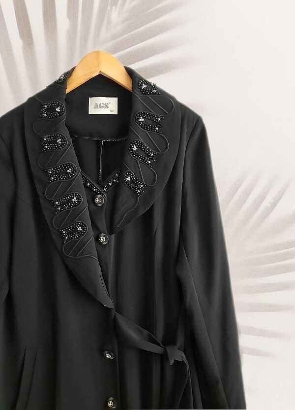 Nakış ve boncukları bizzat kendim işledim, aldığımda düz siyah bir parduseydi kulanmadim beden buyuk geliyor etiket fiyatı 450 idi, kumaşı dokumlu ve kirismayan kaliteli kumastir,beden etiketinde 52 yazıyor ama 50-54 arası uyumludur,ölçüleri: göğüs çevresi 116 cm,bel 108 cm,kol uzunluk 64 cm,pardesu boy 120 cm
