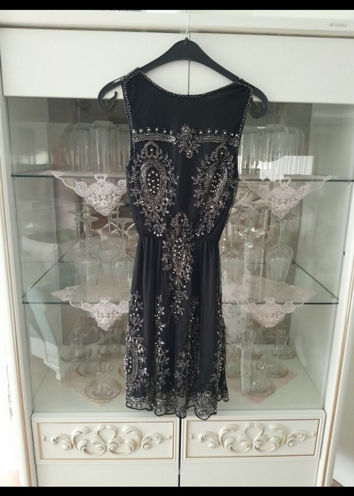 El işlemeli gece elbisesi açık olan arkası dır v kısımlı yeri
