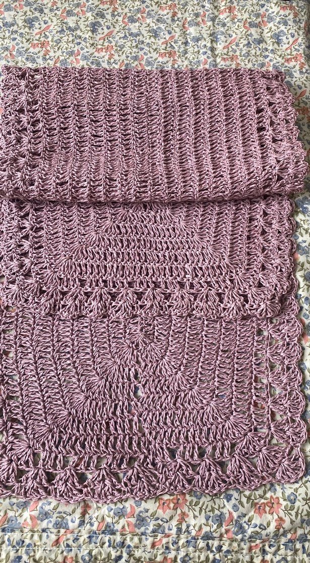 Mor renkte, dantel detaylı triko kadın atkısıdır. Bohem tarzı yansıtan, yumuşak ve sıcak tutan dokusu ile dikkat çeker. En 42 cm-boy 130 cm RUNNER el örgü..Kağıt ip..