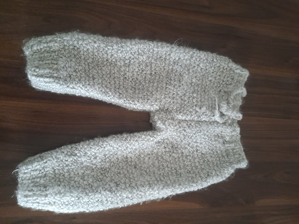 gri yün ipten örgü bebek pantolon