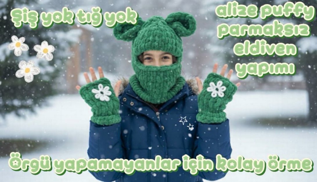 el ölgüsü balaclava bere eldiven set puffiy iple yapildı #kadınbalaclava#kadınbere #kadıneldiven #kızçocukbere #kızçocukeldiven#çocukbalaclava #kadınatkı çiçek desenli, renkli yeşil örgü kız eldiveni. Yumuşak ve sıcak örgü kumaş, elleri korur.