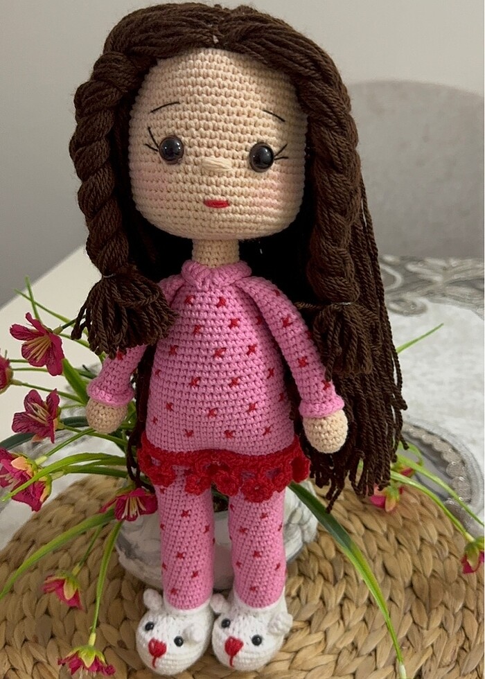 El örgüsü Amigrumi pijamalı ve panduflu şirin bebek. Sıfır ürün.