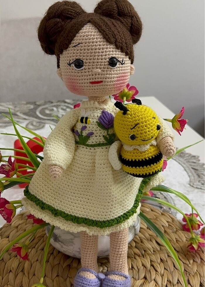 Özenle hazırlanmış el örgüsü Amigrumi sevimli bebek ve minnoş arısı. Sıfır ürün.