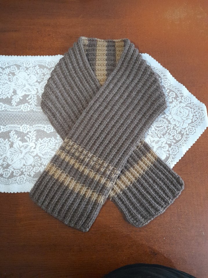 Kadınlar için örgü dokulu, kahverengi ve açık kahverengi tonlarında, rahat ve bohem tarzda şal. Yumuşak örgü kumaşıyla sıcaklık ve konfor sağlar.