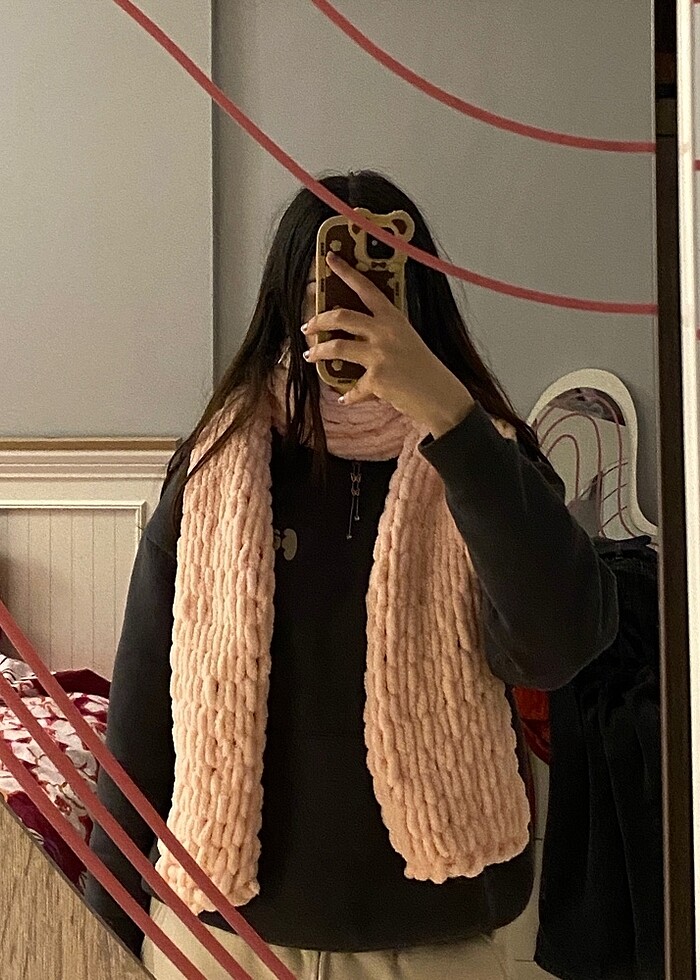 SIFIR ÜRÜN SATIŞ İÇİN ÖRÜLDÜ - El örgüsü atkı 180-200cm arası 7den 70e herkes kullanabilir hoş bir bebek pembesi renginde