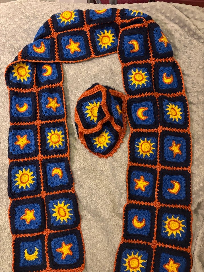 Güneş, ay ve yıldız desenli renkli karelerden oluşan örgü kadın atkı ve bere takımı Annem kendisi örüyor zahmetli bi iş olduğu için fiyat bu şekilde. Almak isterseniz belirtebilirsiniz hazır oldugunda haber veririm. Ayrıca beğendiğiniz başka örgü modellerini atıp fiyat alabilirsiniz