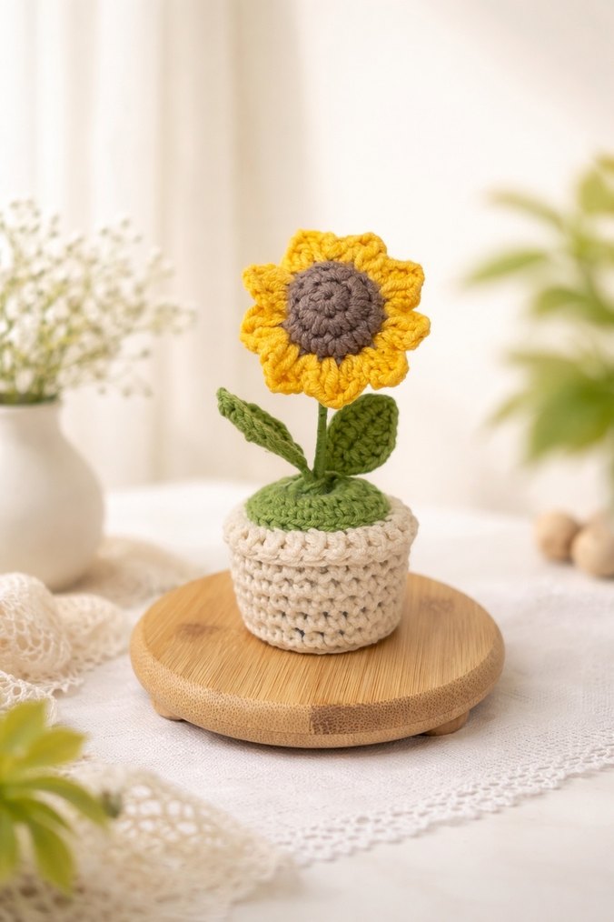 El Örgüsü Ayçiçeği Saksıda - Bohem Stil