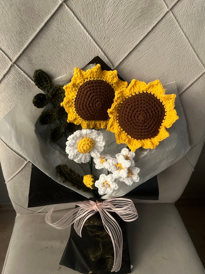 El Örgüsü Ayçiçeği ve Papatya Buketi