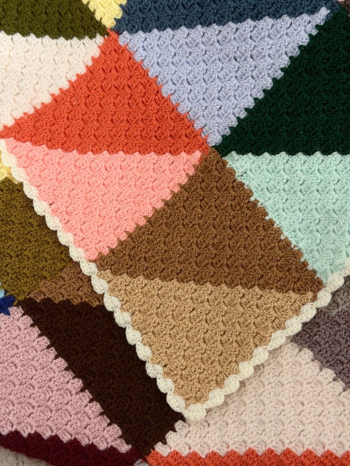 Bu battaniye, yumuşak pastel renk paleti ve dokulu örgü tasarımı ile çok renkli olarak sunulmaktadır. Rahat ve sıcak bir his sağlar. El örgüsüdür, 30 derecede makinede yıkanabilir. Ütü istemez. Ölçüler: 144x192cm. C2C tekniği ile örülmüştür.
